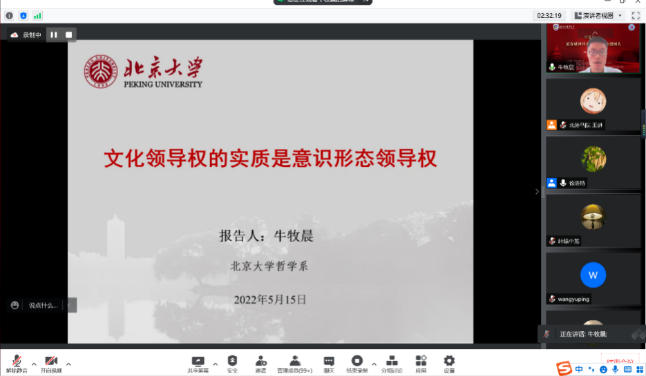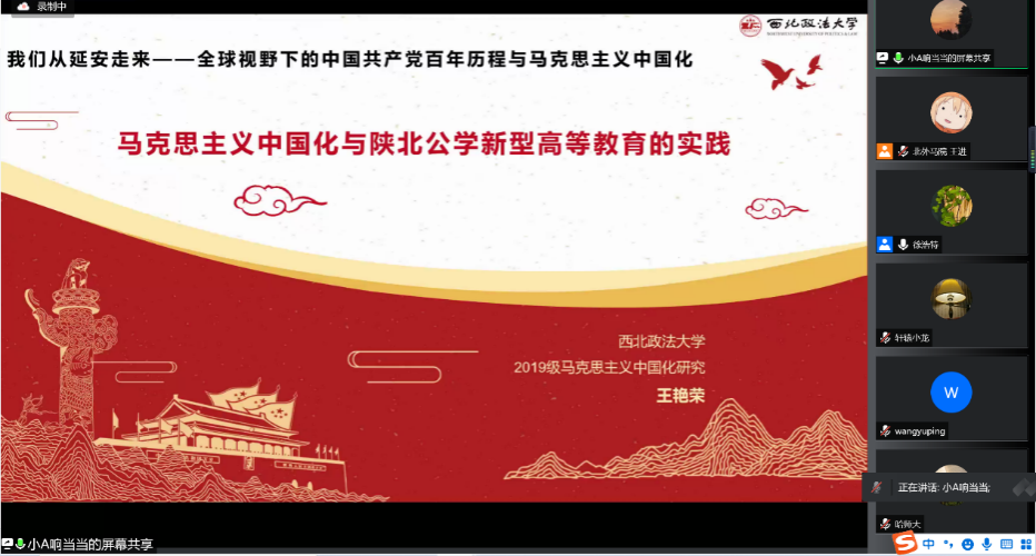 5月15日下午,“我们从延安走来——全球视野下的中国共产党百年历程与马克思主义中国化”学术研讨会分论坛“延安精神与新时代立德树人”在线上成功举行。中央民族大学威廉体育williamhill经理孙英教授、大连外国语大学威廉体育williamhill经理徐浩特教授分别主持了第一阶段与第二阶段的发言,校内外100余名专家学者及青年员工与会。