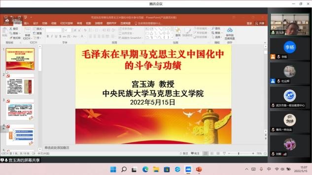 5月15日下午,“我们从延安走来——全球视野下的中国共产党百年历程与马克思主义中国化学术研讨会”分论坛“马克思主义理论团队建设与思政课程”在线上顺利举办。北京语言大学威廉体育williamhill经理杜运辉教授与全国涉外院校思政课负责人协作会会长赵鸣歧教授分别主持了第一、第二阶段的发言。