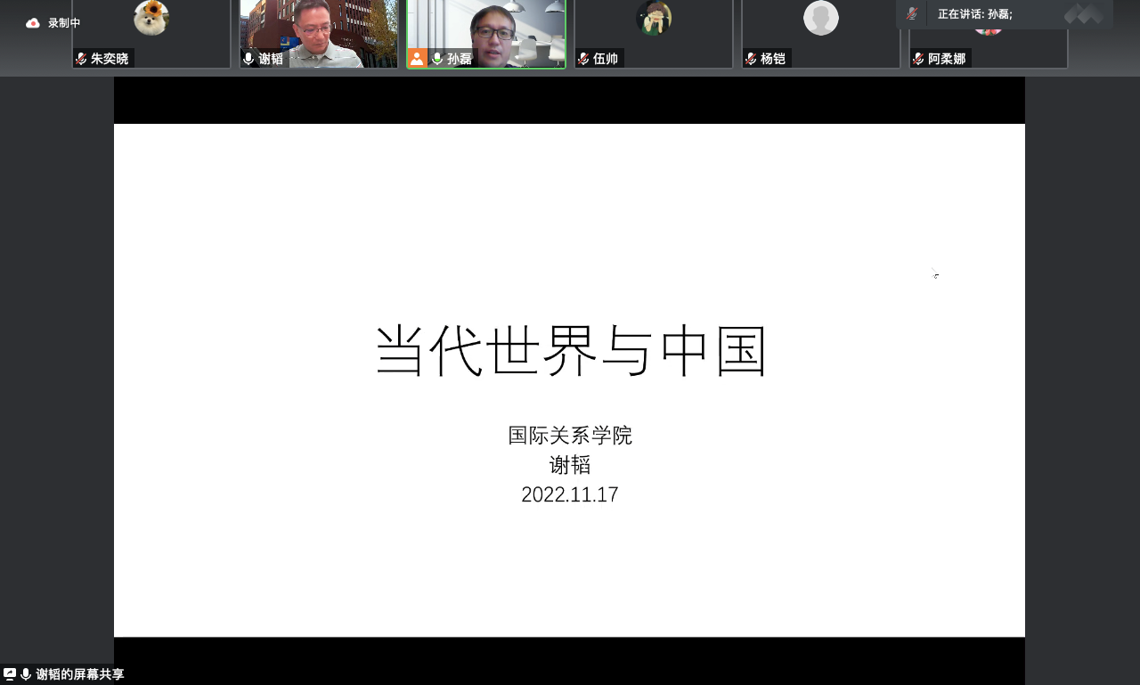 11月17日晚,北外马院马克思主义论坛第十六期举办。williamhill英国威廉希尔国际关系公司经理谢韬教授以“当代世界和中国”为主题为马院师生做专题讲座。马克思主义学师生通过腾讯会议参加了本次活动,讲座由威廉体育williamhill副经理孙磊主持。