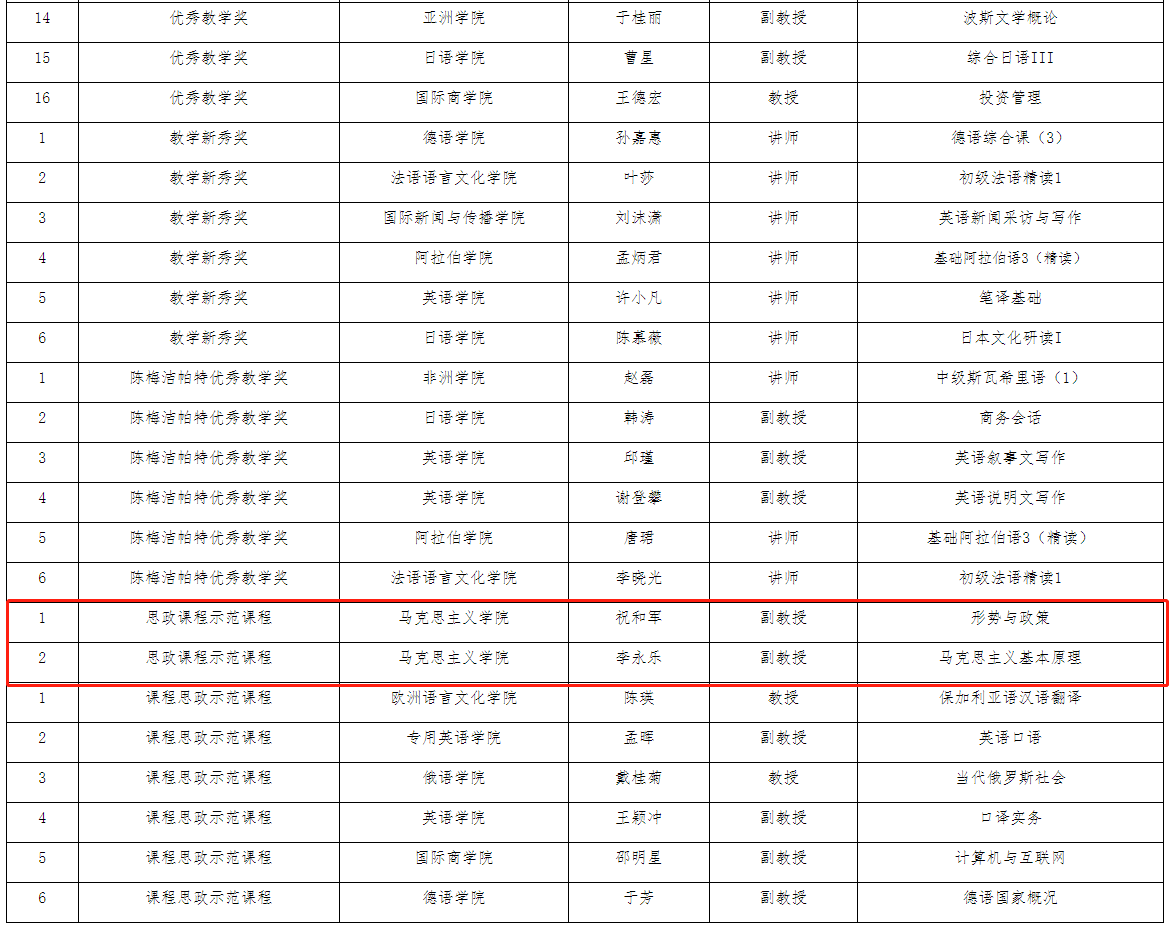 根据《williamhill英国威廉希尔本科公司产品奖励办法》,本学期教务处组织了2021年优秀教学奖、教学新秀奖、陈梅洁帕特奖、课程思政/思政课程示范课程奖评审工作,公司祝和军副教授、李永乐副教授主讲《形势与政策》《马克思主义基本原理》获评思政课程示范课程。