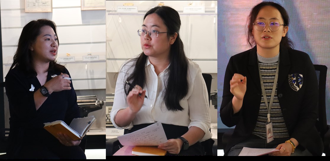 刘菁老师和周英老师分别以北外校史如何融入思政课程为主题分享了教学思路和教学方法。员工代表蒋黄英姿结合自己思政课学习和担任校史馆讲解员的体会谈了学习校史的感悟。李萍书记介绍了离退休人员党支部和关工委的相关情况,希望今后能进一步加强双方的联系与合作。
