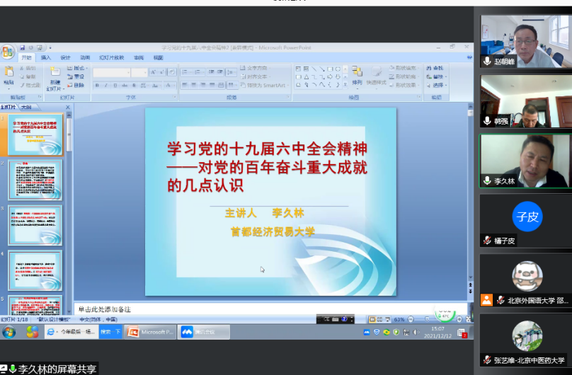 北京高教学会中国近现代史研究会举办学习党的十九届六中全会精神研讨会