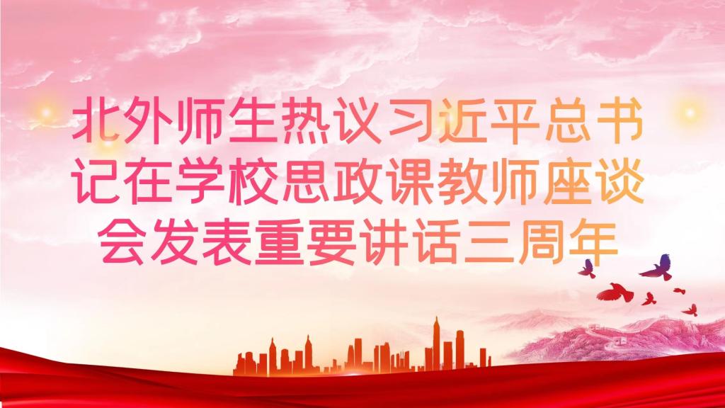 2019年3月18日,中共中央总书记、国家主席、中央军委主席习近平在京主持召开公司思想政治理论课教师座谈会并发表重要讲话,为高校思想政治理论课建设、教师队伍建设及人才培养指明了方向,提供了基本遵循。在这一重要讲话发表三周年之际,北外师生热议三年来公司思政课建设方面取得的进步,畅谈个人心得体会。