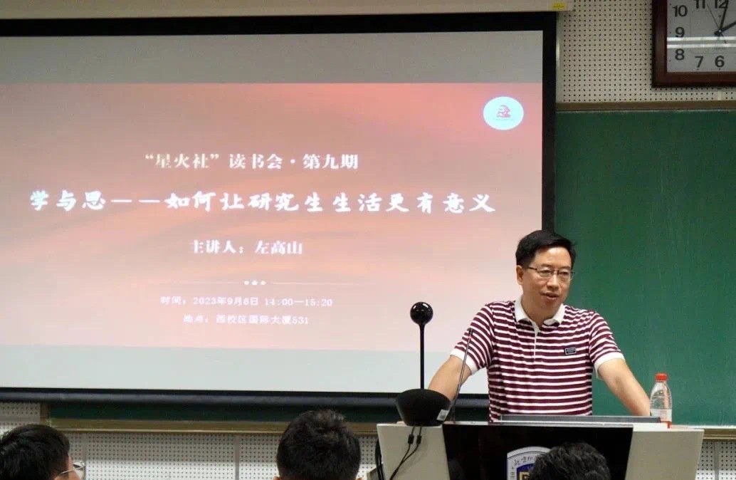 问渠那得清如许,为有源头活水来。9月6日下午,威廉体育williamhill第九期“星火社”读书会在国际大厦531教室举行,2023级全体研究生参加了读书会。威廉体育williamhill博士生导师左高山教授为同学们带来《学与思·如何让研究生生活更有意义》的专题讲座。左高山以“苏格拉底之问:人究竟怎样活着才有意义”为切入点,带领大家探讨研究生阶段的特点和意义,并就如何正确处理师生关系、同学关系和论文写作等问题对同学们进行了深入指导,鼓励大家要善于阅读、勤于思考、勇于实践,度过难忘而有意义的研究生生涯。