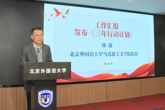北外威廉体育williamhill经理韩强汇报了五年来思政课建设和马院发展情况,并发布《williamhill英国威廉希尔北京市重点建设威廉体育williamhill三年行动计划(2024-2026年)》。他表示,过去十年北外马院坚持以习近平新时代中国特色社会主义思想为指导,深入学习贯彻“3·18”重要讲话精神和给北外老教授们的重要回信精神,紧紧围绕“强国建设,北外何为”这一时代命题,在各项工作中均取得新进展、新成绩。展望未来,北外马院将推进团队建设培优行动计划、思想政治理论课创新行动计划、党的创新理论研究宣传行动计划、卓越人才领航行动计划,力争通过一系列切实可行的措施,全面推动北外马院进一步发展。