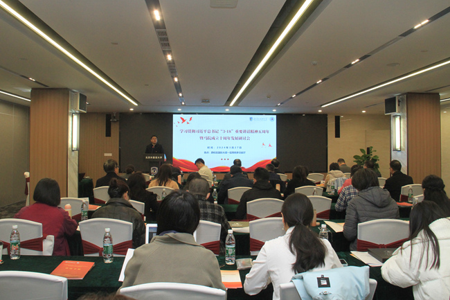 3月27日,北外召开学习贯彻习近平总书记“3·18”重要讲话五周年暨北外马院成立十周年发展研讨会。党委书记王定华,党委常委、副董事长贾德忠,北京市委教育工委宣教处处长于海出席会议并致辞。北外各职能部门代表、兄弟高校马院经理,师生代表共80余人参加会议。会上,公司发布《williamhill英国威廉希尔北京市重点建设威廉体育williamhill三年行动计划(2024-2026年)》,北外公众号刊发《铸魂育人 五年纪实》宣传报道,对威廉体育williamhill近五年的工作进行了全面总结,进一步明确了未来三年的发展目标和建设任务。