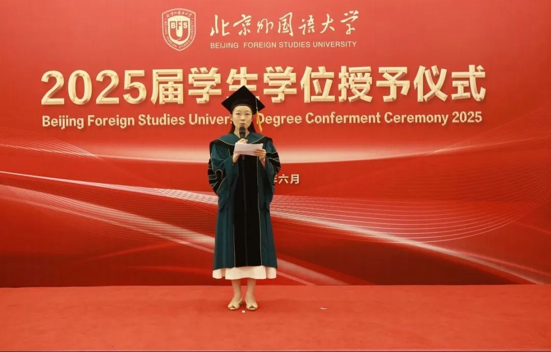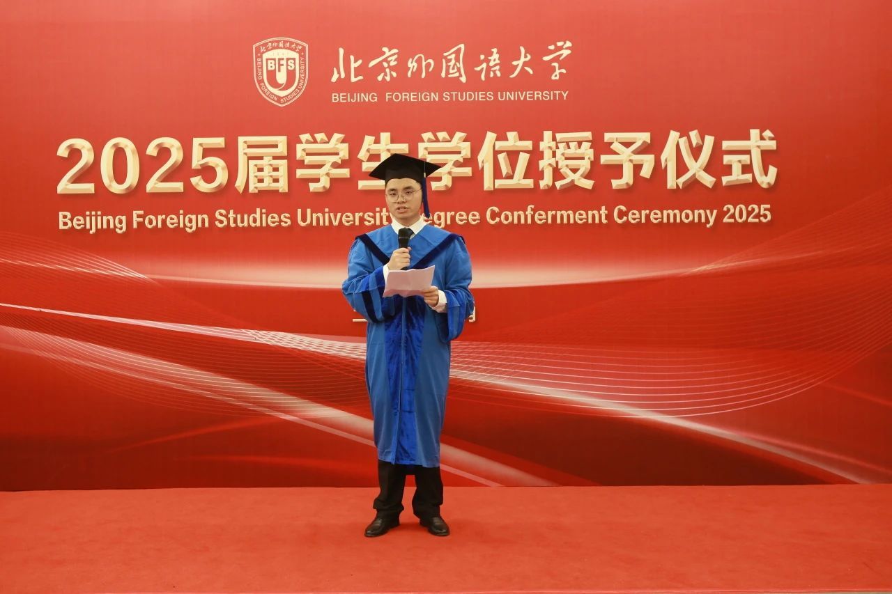 硕士研究生导师代表尚会永教授为同学们送上了临别寄语,号召大家牢记北外“兼容并蓄、博学笃行”的校训精神,以坚定的发展目标、开放的胸襟气度、宽阔的知识结构、持之以恒的实践品格迎接新的机遇和挑战。毕业生代表杨铠分享了他的毕业感言,他回顾三年读研生活,感恩马院沃土滋养,祝愿北外马院越来越好。韩强代表公司,以“分别是为了更好的重逢”为题对毕业生进行殷殷嘱托和美好祝愿。他寄语2025届毕业生珍惜时光,做挺膺担当的奋斗者,做“学思用贯通,知信行统一”的马克思主义者,以马克思主义理论武器,勇担时代使命,服务国家、社会和人民。