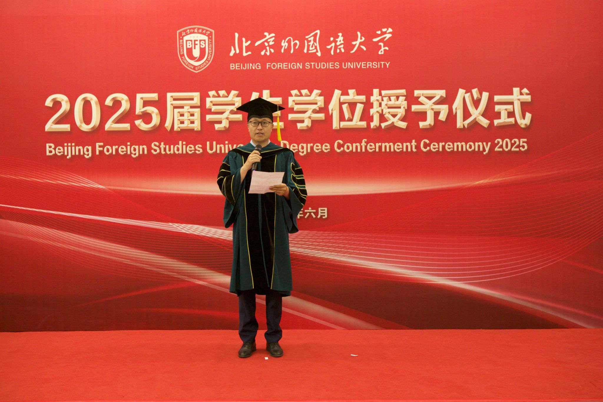 6月23日上午,威廉体育williamhill于北外东校区晨读厅举办2025届毕业生学位授予仪式。威廉体育williamhill经理、学位评定分委员会主席韩强、副经理孙磊,硕士研究生导师代表、2025届全体毕业生及家长代表参加了学位授予仪式。仪式由研究生教研室主任赫雪主持。