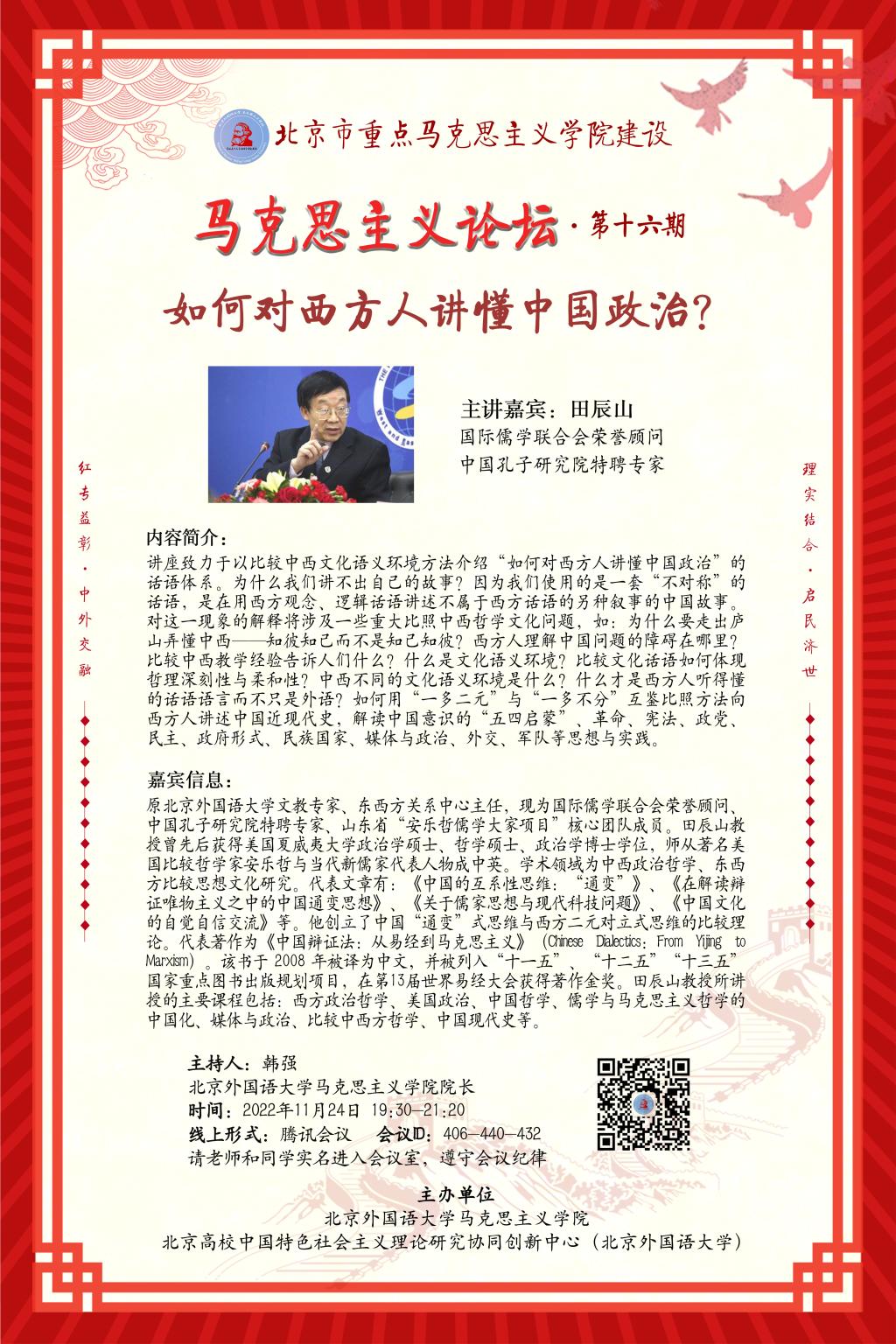 【11月24日讲座】马克思主义论坛第十六期:如何对西方人讲懂中国政治?