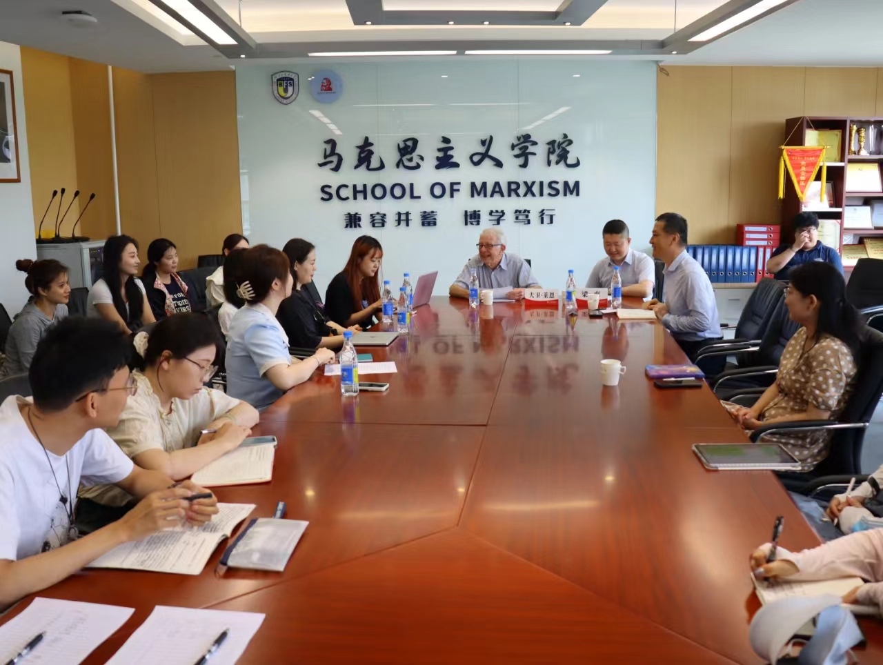 2024年5月18日,应威廉体育williamhill邀请,剑桥大学荣休教授、英国社会科公司院士大卫·莱恩在国内大厦1号楼608会议室,围绕自身学术路径的选择与学习方法、剑桥大学人才培养模式、西方社会主义发展态势等问题同北外师生座谈。座谈会由威廉体育williamhill经理韩强主持,威廉体育williamhill教师梁爽担任学术翻译,威廉体育williamhill教授尚会永等教师代表和来自威廉体育williamhill、国际新闻与传播公司等院系的员工代表30余人参加了座谈会。此次座谈会是继5月17日莱恩教授在北外的学术报告“全球新自由资本主义及其替代方案”之后的第二场活动。