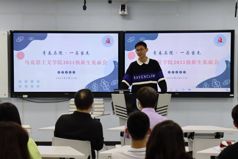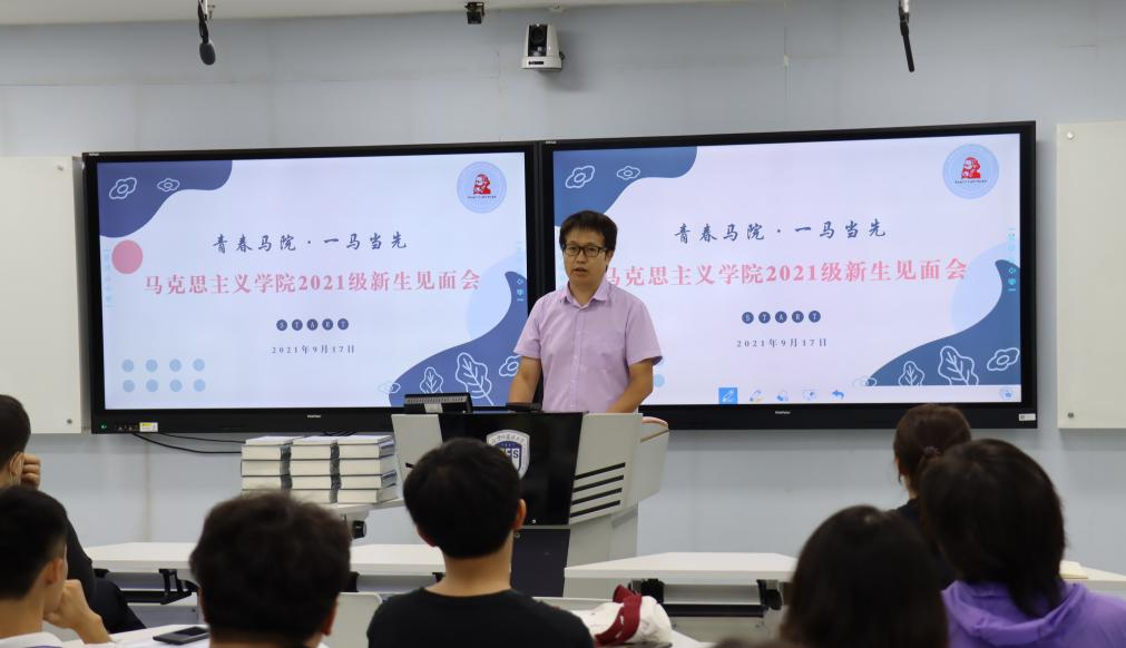 最后,祝和军老师为2021级新生赠书,“读万卷书,行万里路”,希望新生在读原著、学原文、悟原理的过程中筑牢信仰之基,补足精神之钙,开创美好未来。
