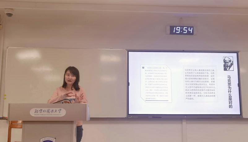 任学岑同学以驳马克思主义“宿命论”为主题,从问题入手,对如何正确认识马克思对社会发展阶段理论进行了讨论。她认为:社会阶段的更替既是科学性的,同时也是革命性的,马克思是在批判资本主义社会的基础之上去阐发未来社会的样貌的。两条重要的原理构成了马克思思想的核心,其一是经济因素在社会生活中发挥的重要作用,其二是历史上各种生产方式的不断交替。她指出,资本主义社会现在正面临着新一轮的危机,结构性矛盾愈演愈烈。而我国的社会主义建设成就展示了一条非西方的现代化道路,为人类提供了新的选择,我们有理由相信人类能够在实践中改造社会,向理想的状态不断努力。