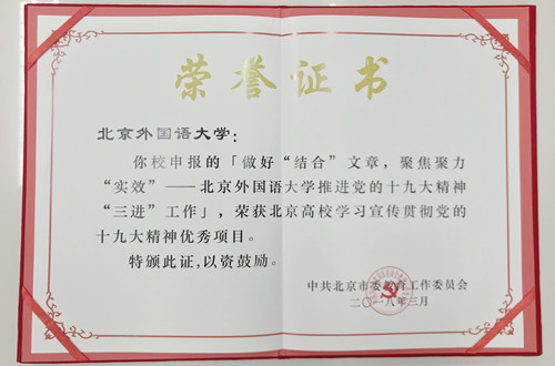 党的十九大以来,威廉体育williamhill按照党中央、教育部、北京市委、北京市委教育工委、公司党委的部署要求,深入学习宣传贯彻党的十九大精神,结合williamhill英国威廉希尔的多语种实际和威廉体育williamhill的专业优长,结合深入看展“思政课教学质量年”各项工作,创新形式,着重做好“结合”的文章,聚焦聚力“实效”,在学懂弄通做实上下功夫,积极推动党的十九大精神进教材、进课堂、进员工头脑、进网络、进团队建设、进科学研究、进教师头脑、进普及活动,使党的十九大精神在公司师生和公司建设中真正落地生根。