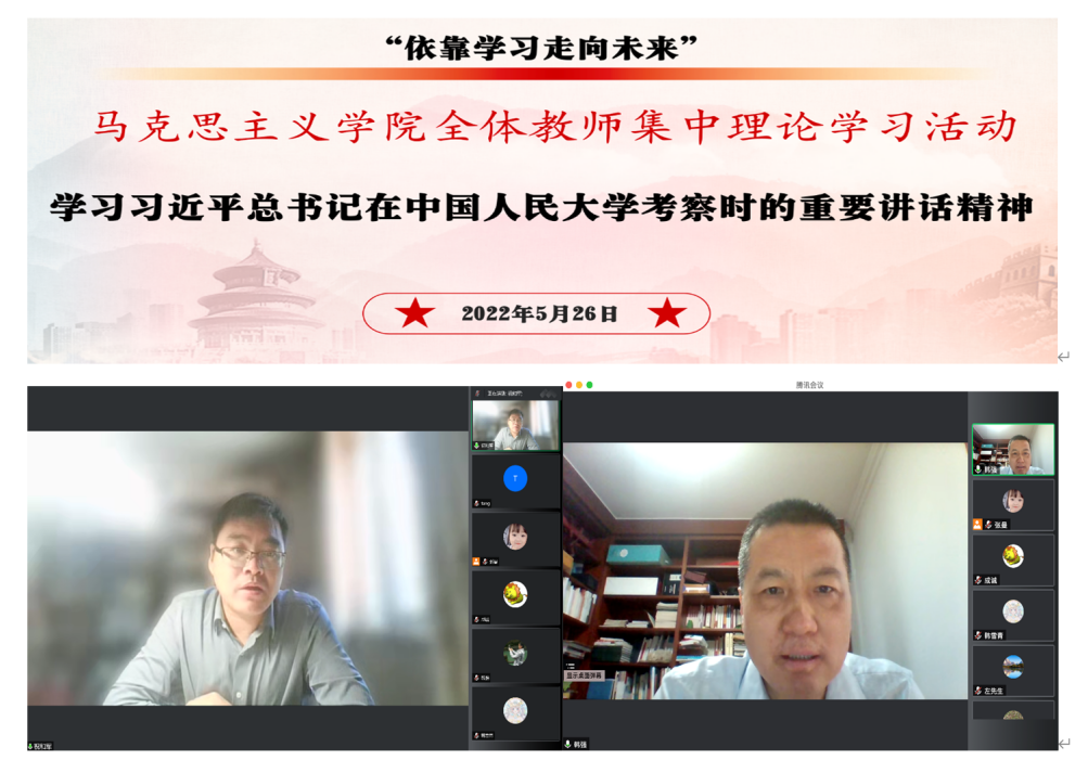 5月26日上午,威廉体育williamhill举办全体教师集中理论学习活动,专题学习习近平总书记在中国人民大学考察时的重要讲话精神,活动由教工党支部书记张曼主持,人事处处长刘博然参加学习活动。