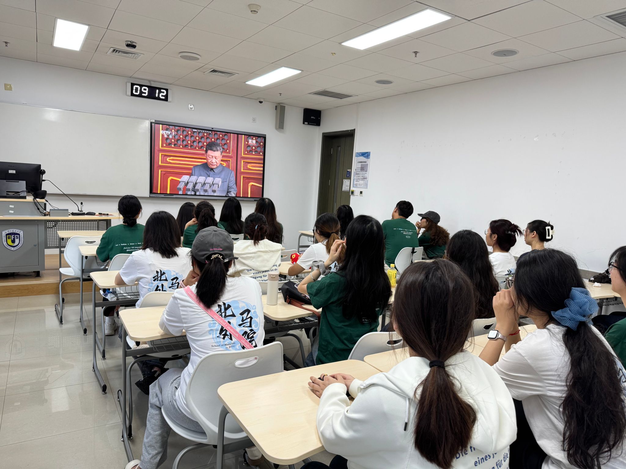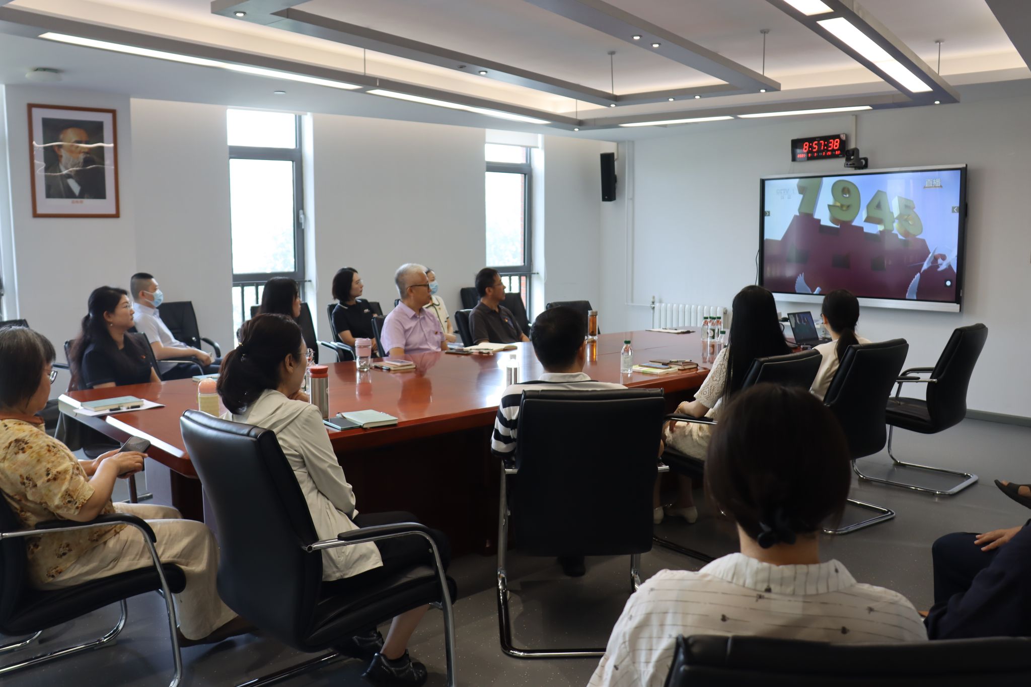 为进一步引导广大师生铭记历史、缅怀先烈,共鉴胜利荣光,凝聚奋进力量,9月3日上午,马院组织全体师生收看纪念中国人民抗日战争暨世界反法西斯战争胜利80周年大会直播,公司全体教师和员工分别在学院会议室、党员活动室、教室集中收看大会盛况。